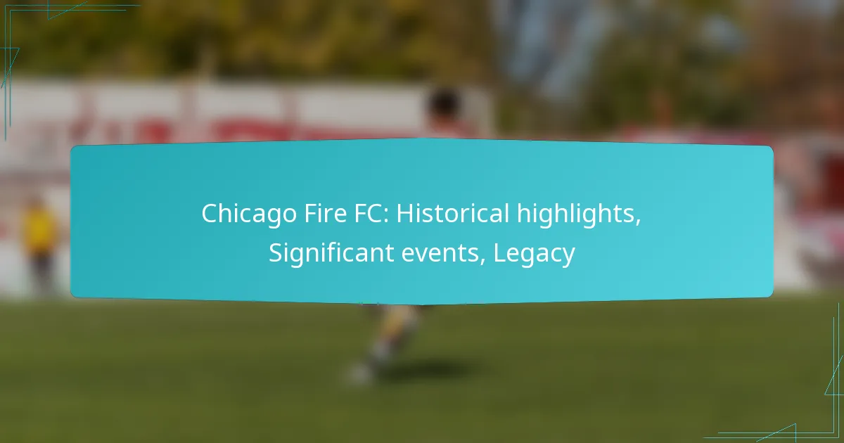 Chicago Fire FC, established in 1997, has a storied history within Major League Soccer, marked by notable achievements and a commitment to the growth of soccer in the United States. The club’s legacy includes multiple championships and a dynamic roster of influential players, reflecting its status as a key player in American soccer. Significant events, such as ownership changes and community initiatives, have further shaped its identity and fan engagement over the years.